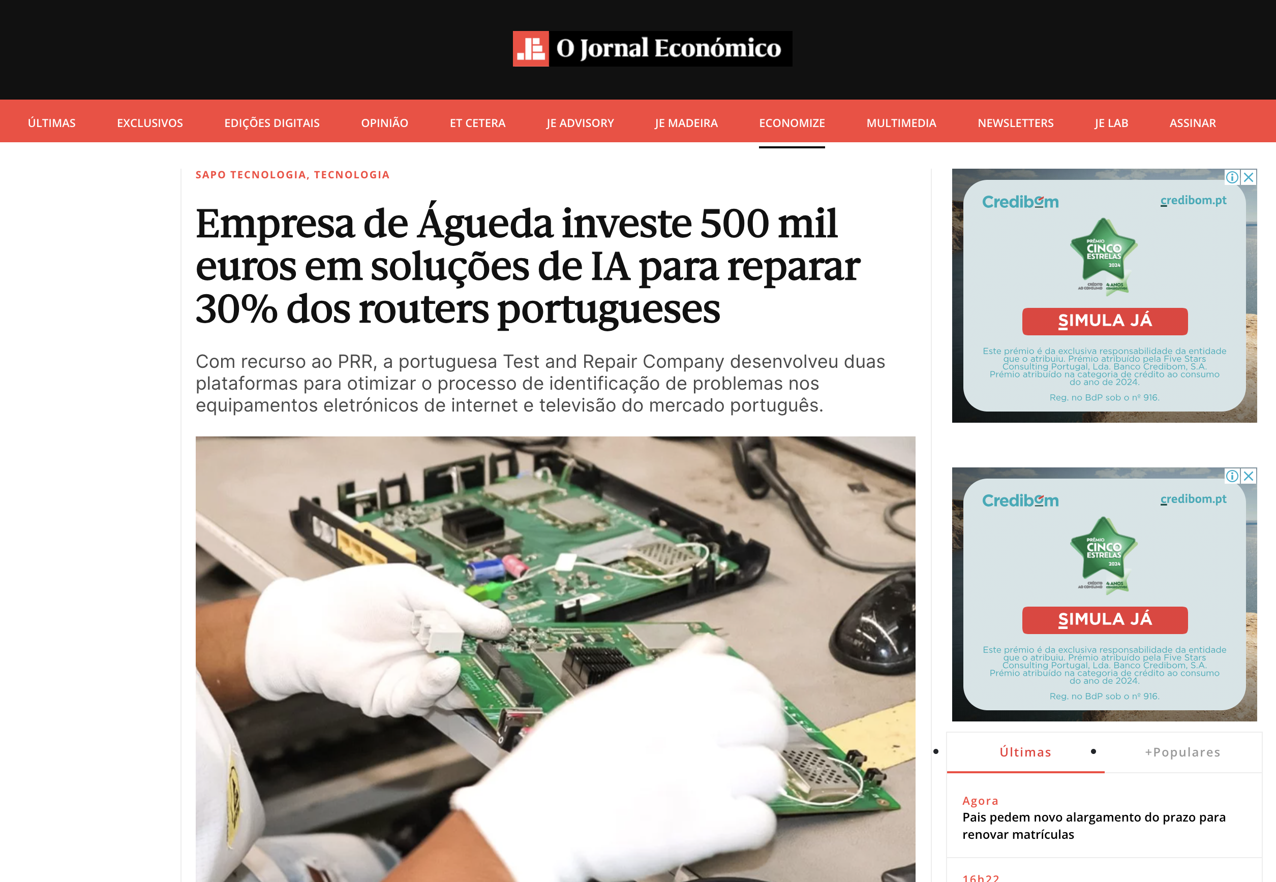 Empresa de Águeda investe 500 mil euros em soluções de IA para reparar 30% dos routers portugueses