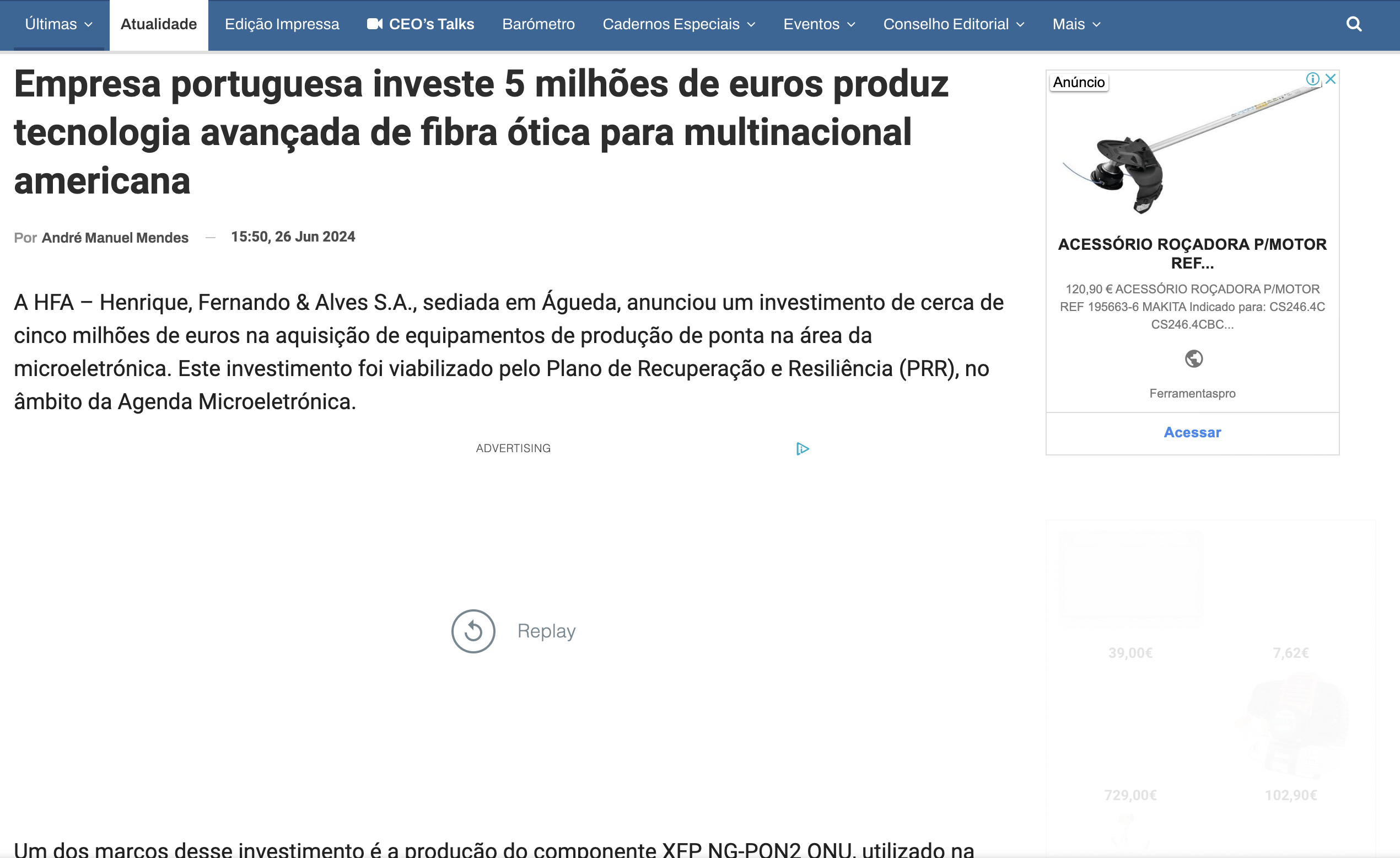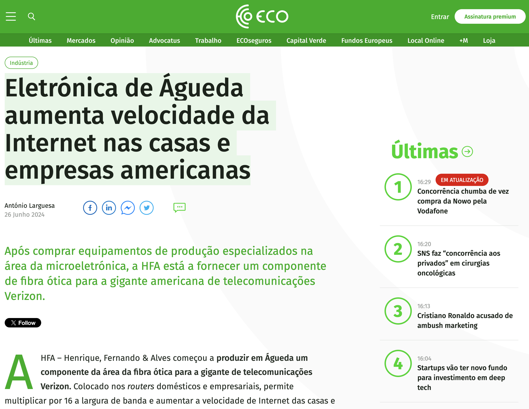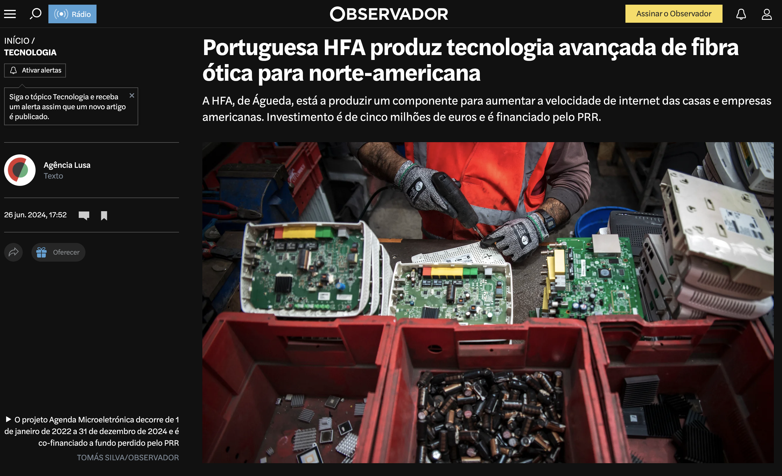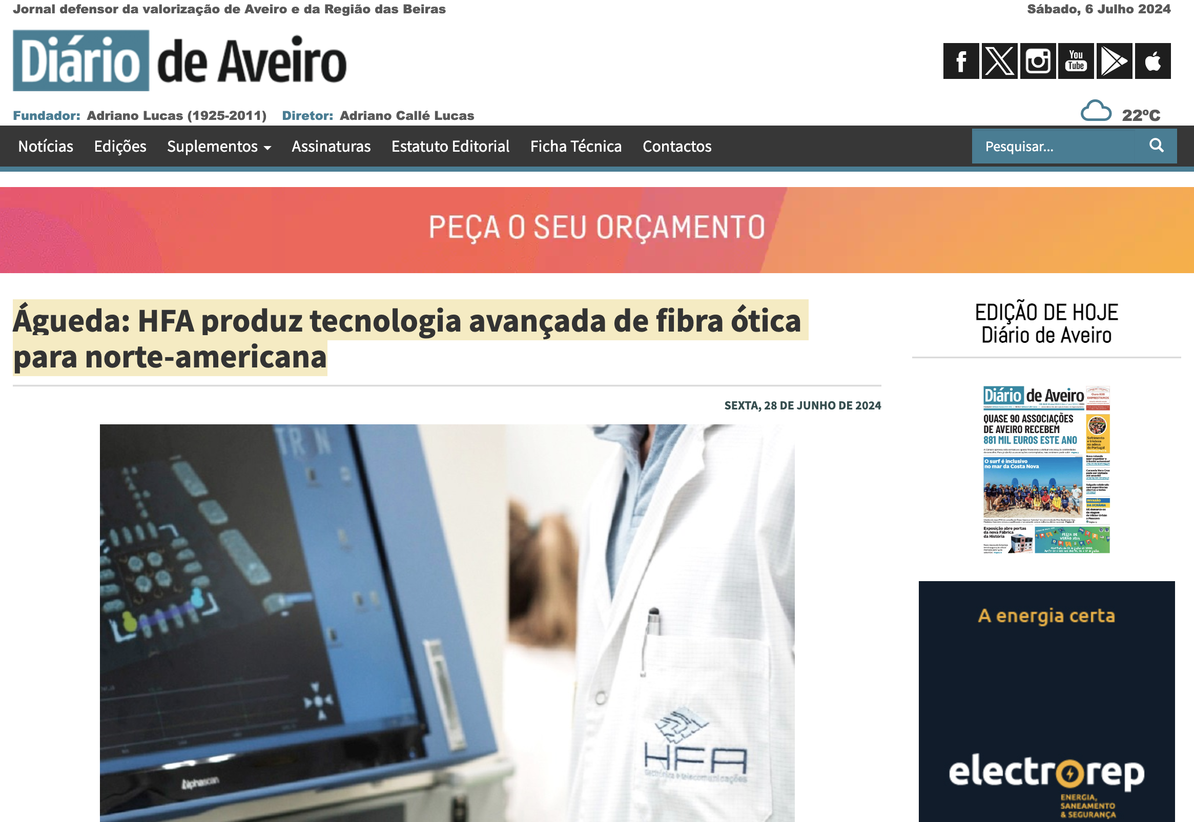 Águeda: HFA produz tecnologia avançada de fibra ótica para norte-americana