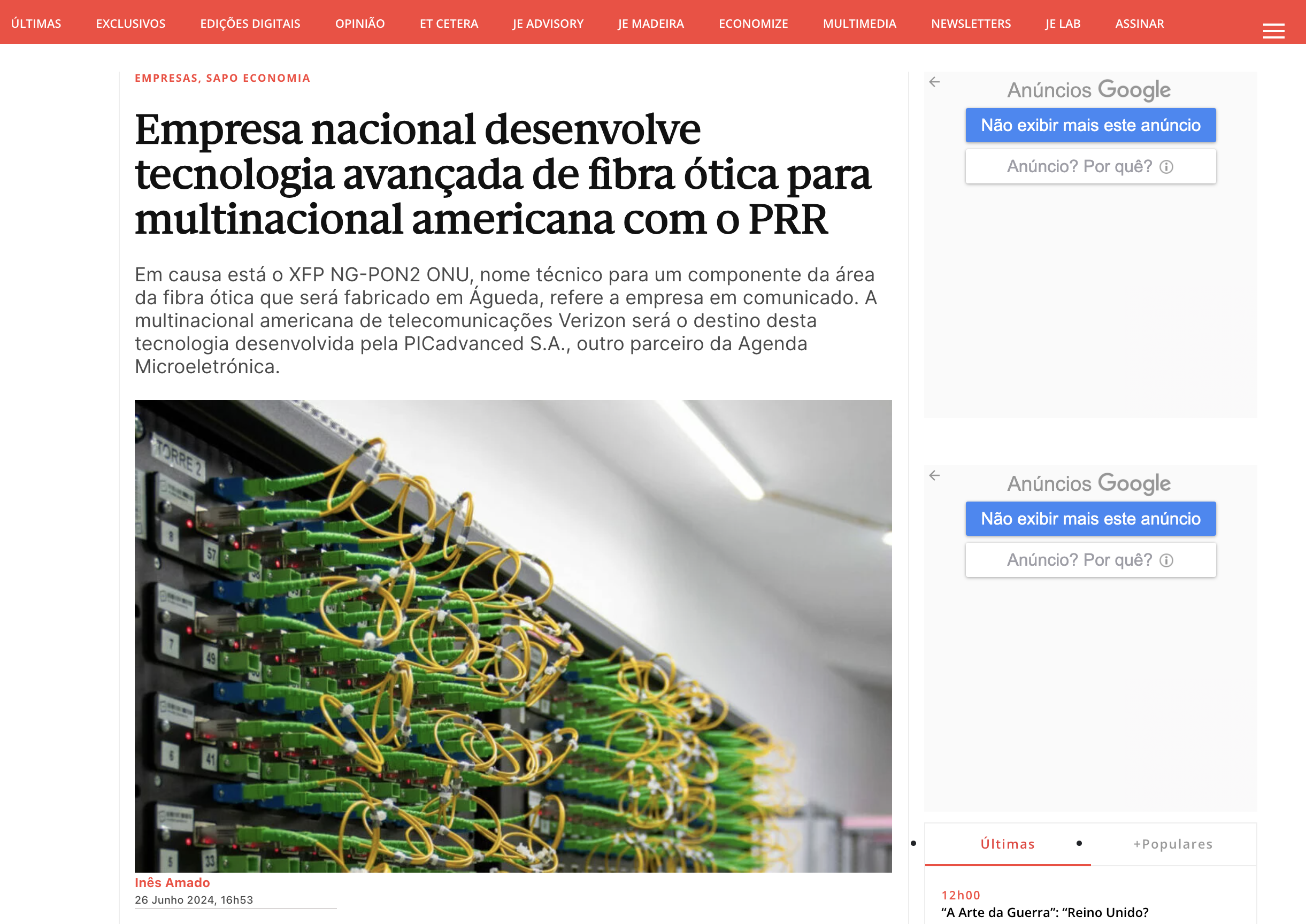 Empresa portuguesa investe 5 milhões de euros produz tecnologia avançada de fibra ótica para multinacional americana
